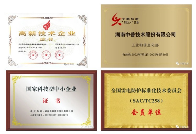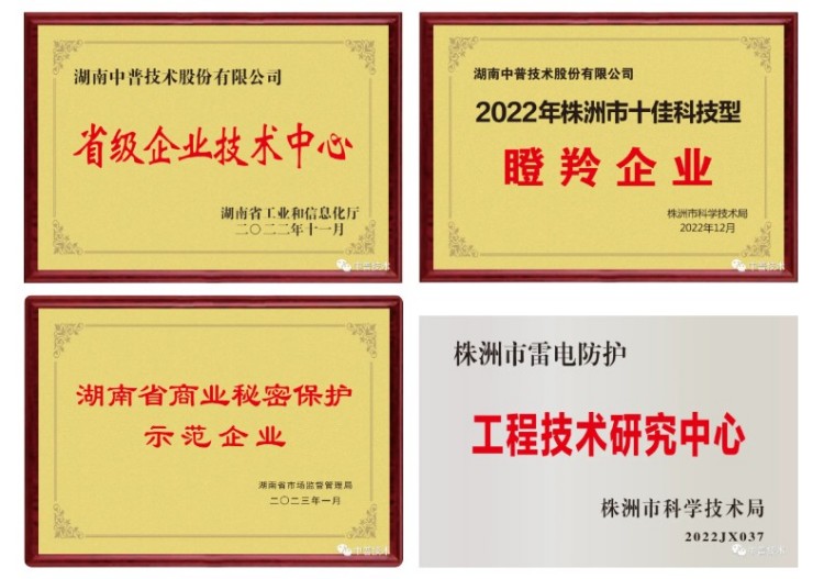 公司是國(guó)家高新技術(shù)企業(yè)、國(guó)家級(jí)“專精特新”小巨人企業(yè)(2022年7月1日-2025年6月30日)、湖南省中小企業(yè)知識(shí)產(chǎn)權(quán)貫標(biāo)單位、湖南省先進(jìn)制造專板掛牌企業(yè)、湖南省商業(yè)秘密保護(hù)示范企業(yè)、株洲市科技型瞪羚企業(yè)、株洲市“中小企業(yè)100強(qiáng)”單位,是中國(guó)氣象學(xué)會(huì)雷電防護(hù)委員會(huì)委員單位、中國(guó)建筑學(xué)會(huì)雷電委員會(huì)會(huì)員單位、湖南省氣象學(xué)會(huì)常務(wù)理事單位。同時(shí),公司還擁有湖南省住房和城鄉(xiāng)建設(shè)廳頒發(fā)的特種工程(特種防雷)專業(yè)承包資質(zhì)、安全生產(chǎn)許可證。