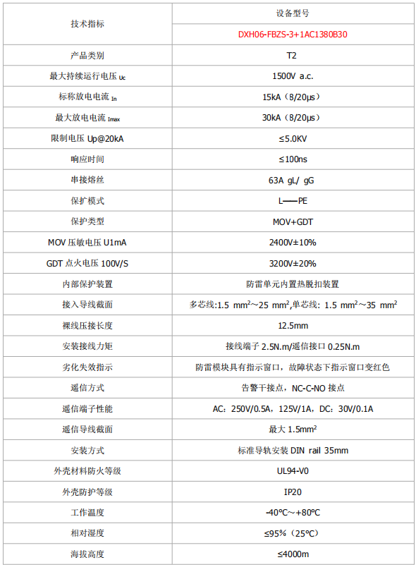 DXH06-FBZS-3+1AC1380B30是帶有遙信報(bào)警裝置的電涌保護(hù)器。產(chǎn)品主要用于通信、鐵路、計(jì)算機(jī)網(wǎng)絡(luò)、電力、氣象、交通等領(lǐng)域的電子、電源設(shè)備的防雷以及操作過電壓的保護(hù)。