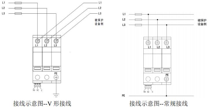 1模塊結(jié)構(gòu)浪涌保護(hù)器接線(xiàn)圖如安裝接線(xiàn)圖所示: