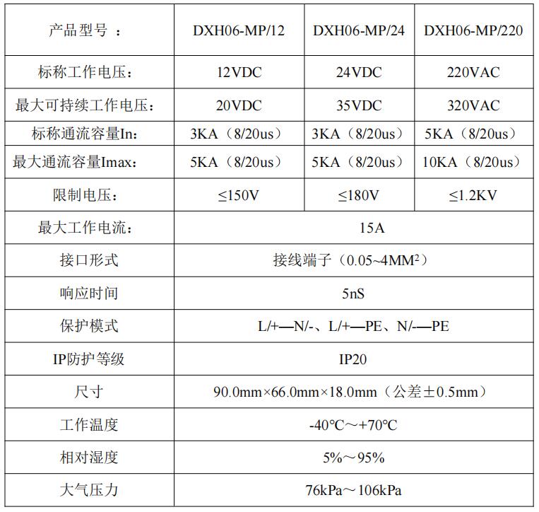 DXH06-MP-DS 型電源防雷器,用于滿足低壓電源的電過電壓保護。