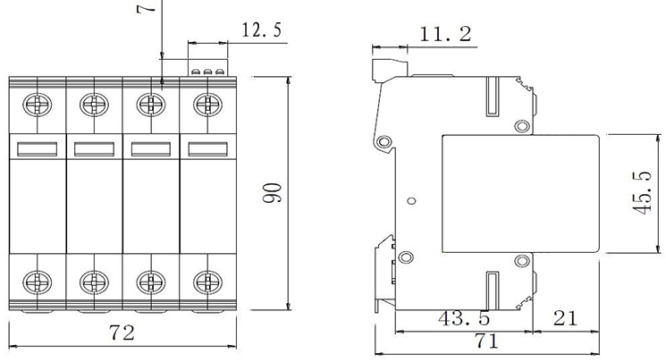 外形尺寸(不含接線端子) | 90mm×71mm×72mm |