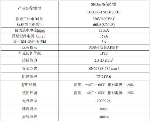 雷電沖擊后備保護(hù)器不脫扣SPD持續(xù)保護(hù)的作用;本產(chǎn)品僅限使用于SPD回路過(guò)電流保護(hù),請(qǐng)勿使用于其它場(chǎng)合。